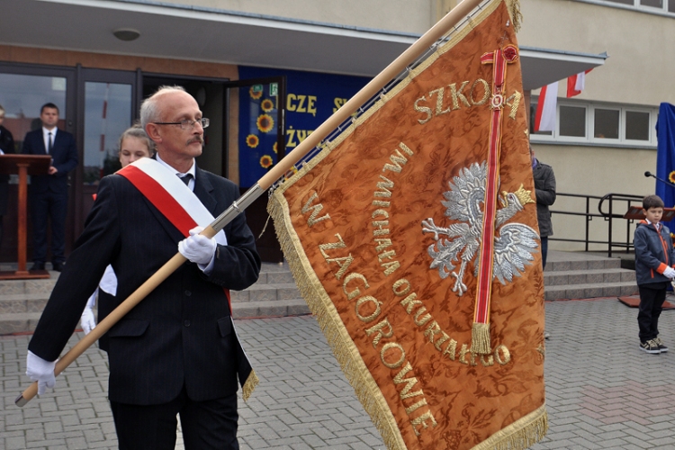 W dniu 27.09.2013 - Dyrekcja szkoły przeprowadzila piękną patriotyczną uroczystość związaną z uczczeniem 50 lecia szkoły oraz rocznicy nadania patrona szkole imienia kpr Michała Okurzałego. Żołnierz radiotelegrafista zginął śmiercią bohaterską w czasie walk w forsowaniu Wisły w 1944 r.w Dęblinie. Zarząd Koła nr 17 przy WSOSP w Dęblinie , który na swoim terenie ma obiekty związane z walkami w czasie II wojny światowej oraz kopiec kpr M. Okurzałego wystąpił do ZG ZŻWP w Warszawie aby nadać odznaczenie na sztandar szkoły za jej dużą patriotyczno - historyczną aktywność. W imieniu ZG ZŻWP na sztandarze szkoły odznaczenie zawiesił wiceprezes Wielkopolskiego ZW ppłk Henryk Kania. Dziękujemy dyrektorowi Andrzejowi Bernatowi za jego duże zaangażowanie.